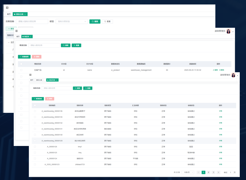 通过指标列表 对所有的指标进行生命周期管理,支持上钻下取,全面了解指标的计算过程数据来源,填报过程,审批情况等。